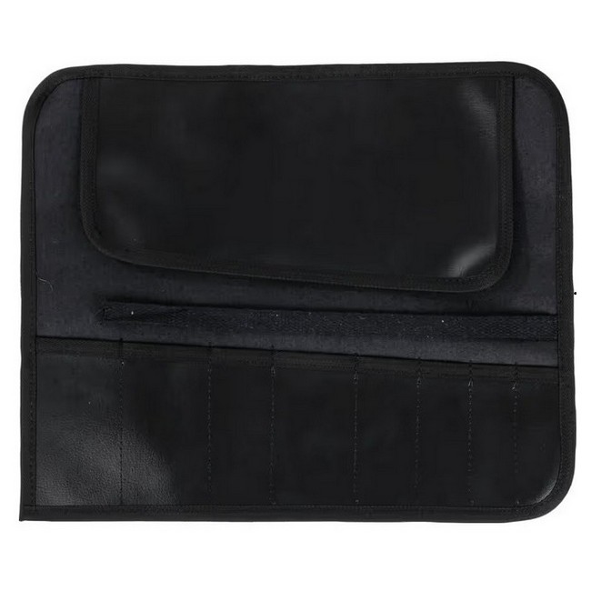 Made from the finest waterproof, puncture‑resistant PVC with a heavy‑duty nylon weave inner, this eight‑pocket tool roll combines robust protection with practical organisation for professionals who need reliable portability and quick access to commonly used hand tools. The flat pockets are arranged for orderly storage so individual items sit in defined positions, reducing search time on site and making missing tools immediately apparent when laid out on a bench or hung from a hook. When unrolled the linear layout provides full visibility and rapid selection, and when wrapped and secured with the flap cover and webbed ties the compact cylindrical bundle keeps tools contained and cushioned against impact, abrasion and contact with other items during transit. Sized to 390 by 330 millimetres and weighing just 190 grams, the roll offers a lightweight solution that slips into vehicle compartments, narrow shelving or equipment cases without adding bulk, and its rot‑proof construction resists damp conditions commonly encountered in electrical, construction and industrial environments. The puncture‑resistant outer layer sheds debris and moisture to keep tools cleaner and extend service life, while the strong inner lining resists tearing under repeated use and supports heavier items held within the pockets. Simple fastening and a low profile make this tool roll easy to carry by hand or to stow in busy workspaces, and the durable materials tolerate frequent rolling and unrolling with minimal wear. Designed for tradespeople who value order, protection and efficiency, it accommodates a range of slim and wider tools and includes secure closure to prevent accidental unrolling. Tools shown are not included; the product is supplied as a durable storage and transport solution intended to simplify tool management and protect your equipment between jobs. Its easy‑clean surface requires only a wipe down to remove grease and grime, minimising downtime for maintenance and helping teams maintain hygiene standards on sensitive sites, while the neutral black finish conceals marks and presents a professional appearance that complements existing workshop storage systems.