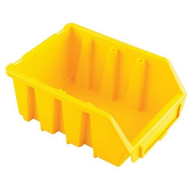 Enjoy the superiority of professional small items storage with a robust, versatile plastic bin engineered to transform cluttered workspaces into efficient, orderly environments, and sized at 116 x 161 x 75 mm to accomodate a wide range of small components while still fitting neatly on shelves or walls. The design combines free-standing and wall-mountable functionality, offering a slat attachment and secure screw points for fixed installations as well as specific clasps that allow multiple units to interlock and form stable, space-saving vertical systems, so you can build a tailored storage wall or stack units when floor space is at a premium. Manufactured from hard-wearing, crack- and corrosion-resistant plastic, the bin withstands frequent handling, stacking and unstacking, and resists deterioration in demanding industrial, warehouse, stockroom or workshop settings, delivering long service life and reliable protection for stored items. Practical features include a moulded label holder on the front for clear identification and fast retrieval, a front access opening that permits quick visual checks and straightforward picking of parts, and a shape engineered to maintain stability when loaded and stacked, preventing shifting or accidental toppling. The bright yellow finish improves visibility and zoning within larger systems, helping teams locate categories of parts at a glance and reducing search time, misplacement and duplicate purchases. Because these bins are modular, you can combine different sizes and colours to create a coherent, easy-to-manage system that reflects inventory needs and workflow patterns, while the ability to wall-mount or stack offers flexibility as storage requirements evolve. Installation is simple, maintenance is minimal, and the low initial investment typically pays back through time saved, reduced downtime, improved stock control and fewer damaged items. Suitable for offices, factories, maintenance departments and retail backrooms, this small parts storage solution brings organisation, durability and adaptability together so teams can focus on productive work rather than hunting for loose components.